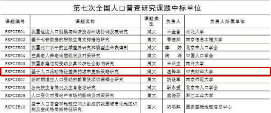 【信息速递-科研项目】我院温锋华副教授团队中标《第七次全国人口普查研究课题》重大课题