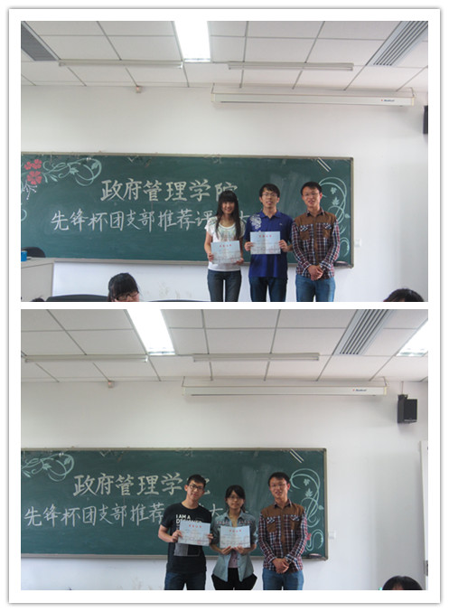 在之后的投票环节中,各支部本着公平公正的原则谨慎投票,最终国政12团支部以5票对3票优势获得推荐资格。对此,孙老师做出总结:“参评的每个支部都很优秀,获奖的支部要再接再厉,而落选的支部不要灰心,继续完善自己,争取在下次的优秀支部评选中胜出。”紧接着所有人就如何做好团支书,如何高质量完成学校工作等话题进行了探讨,老师还对大三的团支书进行表扬,肯定他们在忙碌的学业和实习中仍然积极参加团学活动,为学院团学工作的顺利进行做出贡献。此外,孙老师为校级优秀团支书及优秀团支部颁奖并合影留念。最后,他阐释了本学期所举办系列活动的核心思想:继续围绕上学期主题——“中国梦”展开各项工作,得到了大家的积极响应。