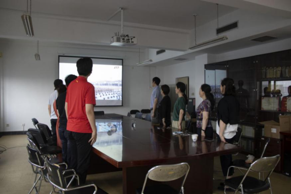 5357cc拉斯维加斯党委组织师生于学院南路校区主教学楼1407会议室、1305会议室、203教室三个分会场集中观看庆祝大会,畅谈学习体会,感悟思想伟力。
