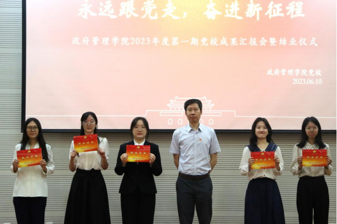 最后,学院党委书记、党校校长于鹏教授做总结性讲话。于鹏书记向56名入党积极分子学员和37名发展对象学员的顺利结业表示祝贺,指出本期培训班呈现出三个“好”:严格遵守学习纪律的班风好;知行合一的学习氛围好;结业考试和成果汇报的成绩好。于鹏书记强调,结业仪式并非学习的结束,而是进一步学习的开始,全体学员要以此作为新的起点,以更高的标准、更严的要求,以实际行动向党组织靠拢,并提出三点要求:第一,坚持理论学习,夯实理想信念之基。要坚持读原著、学原文,全面学习领会习近平新时代中国特色社会主义思想,做到内化于心、外化于行。第二,厚植家国情怀,勇担历史责任使命。不仅要勤学专业知识,更要树立起崇高的理想信念,将青年之“小我”融入“国家富强、民族复兴、人民幸福”的“大我”中,努力成长为担当民族复兴大任的时代新人。第三,躬身社会实践,激扬青春奋进。要躬身实践、知行合一,发挥公共管理学科专业特长,深入到国际组织、城市、社区、乡村的治理场景中,积极投身于中国式现代化的实践,以青年力量书写时代新篇章。最后他寄语,希望同学们能早日成为一名合格的共产党员,在以中国式现代化全面推进中华民族伟大复兴的进程中争做先锋,施展才华,绽放青春贡献。